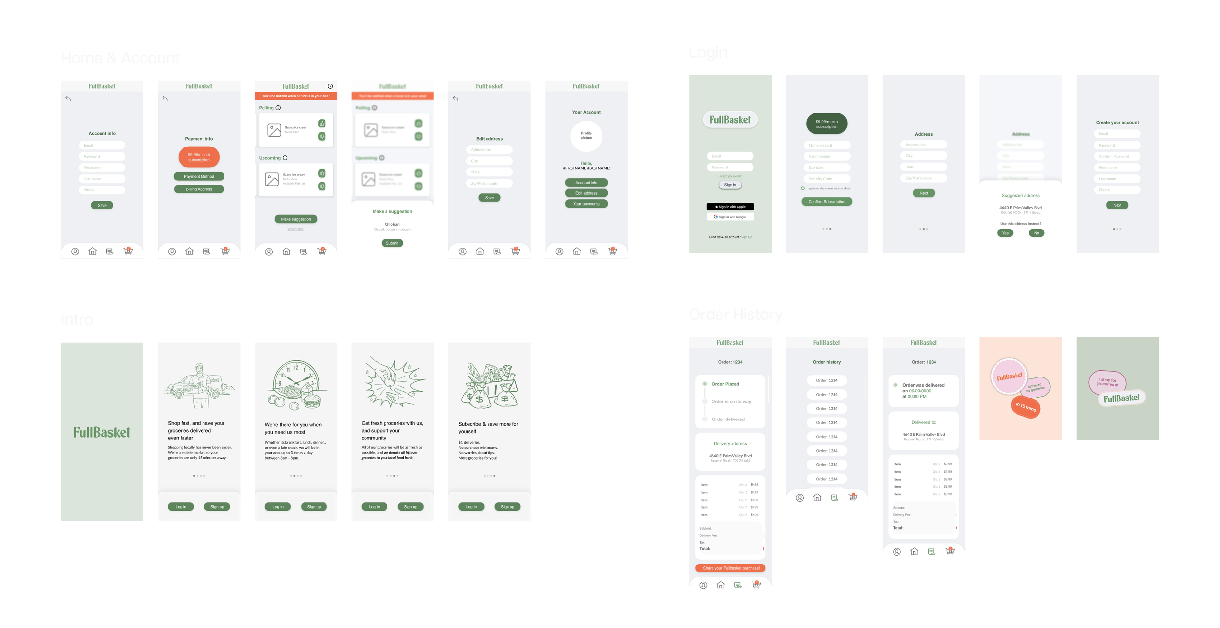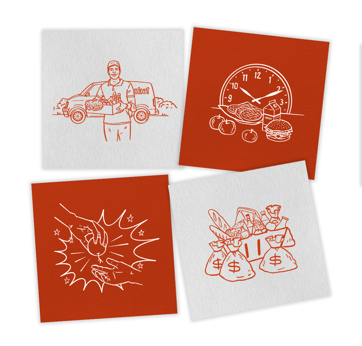Through research and creative exploration, the brand direction drew from familiar supermarket signage by grounding the experience in something instantly recognizable. A hand-crafted illustration style and logo system brought warmth and locality, while a cohesive visual identity extended across icons and UI. The result was a fully designed, test-ready app that balanced speed, clarity, and charm that positioned Fullbasket as both convenient and community-driven.